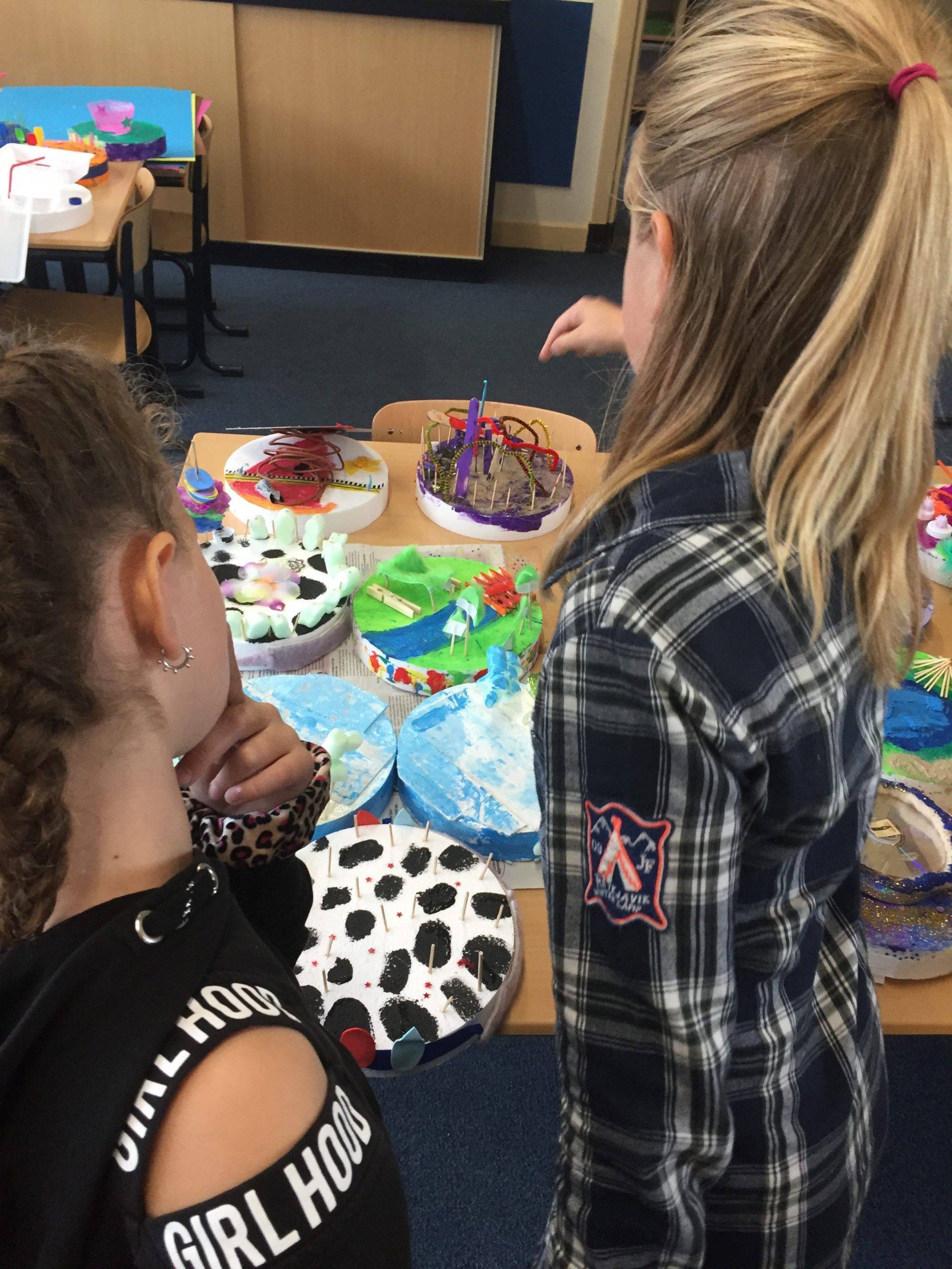 Identiteit: Wie ben jij? Wat zijn jouw talenten? Waar hou jij van? Waar droom jij van? Als er nu een planeet zou zijn die helemaal is zoals jij, hoe zou die er uitzien? Wat is er te doen, welke kleuren, welke wezens wonen er en kan iemand vanuit een ruimteschip meteen herkennen dat dit echt jouw planeet is en niet van iemand anders? Een vrije, creatieve opdracht om na te denken over wie je eigenlijk bent en hoe je je onderscheidt van anderen.